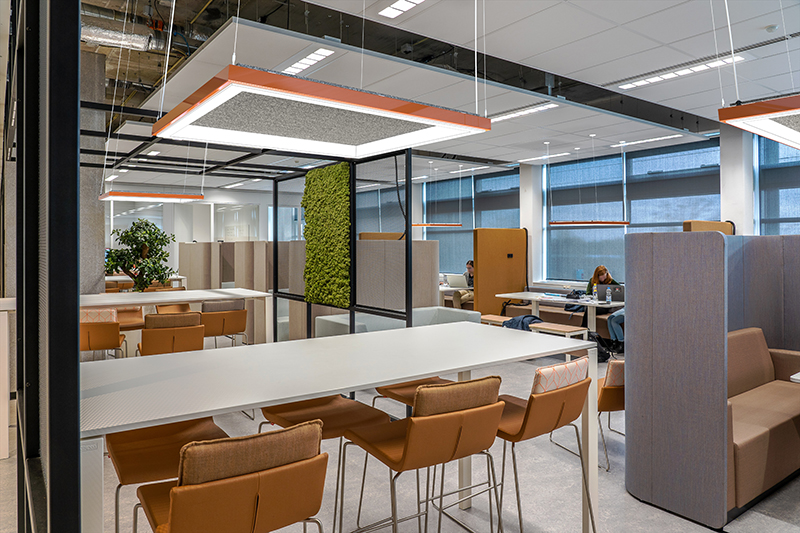 - 1/2” center acoustic panel reduces noise level in environment